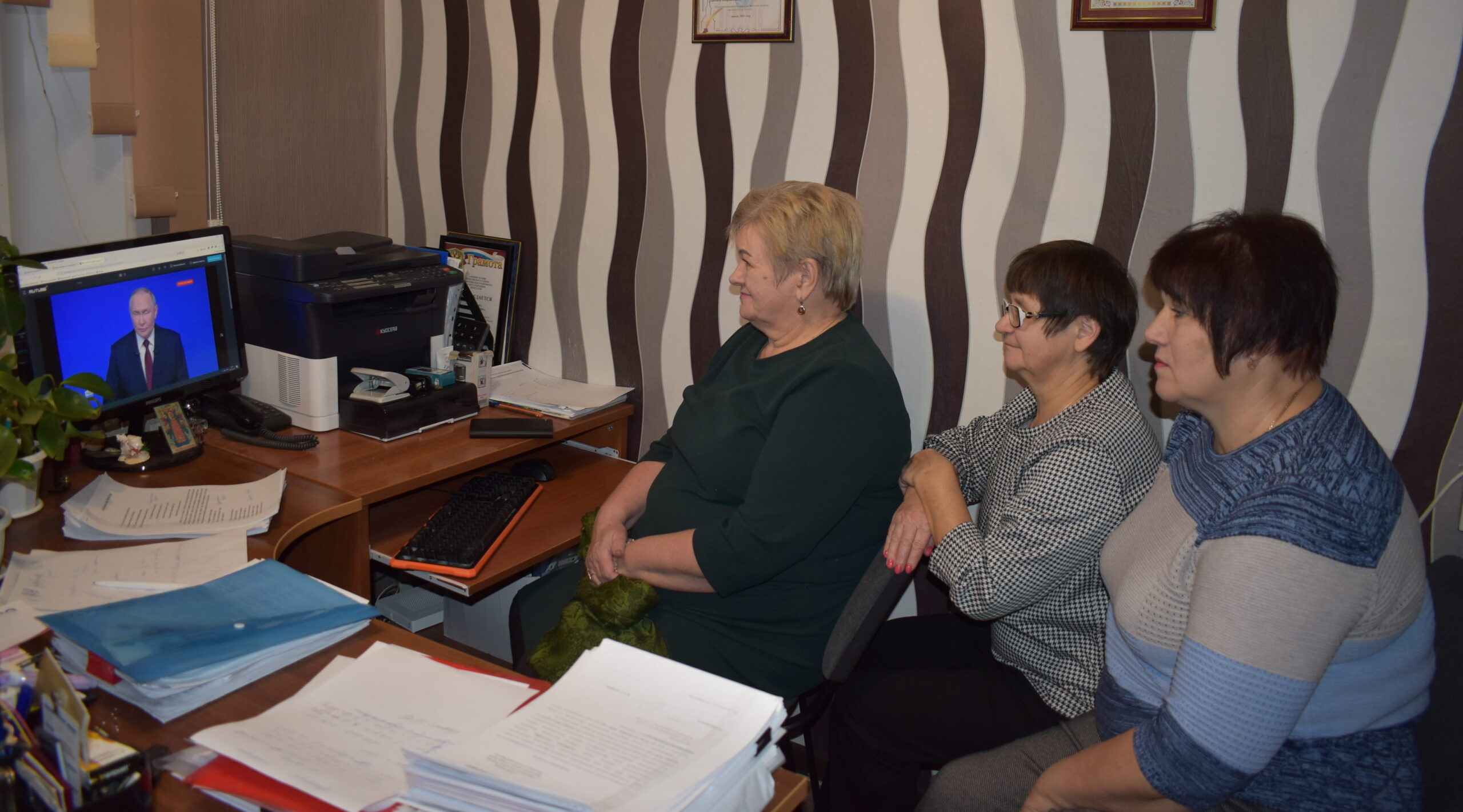 Сегодня ровно в полдень началась совмещенная прямая линия и пресс-конференция Президента России ...